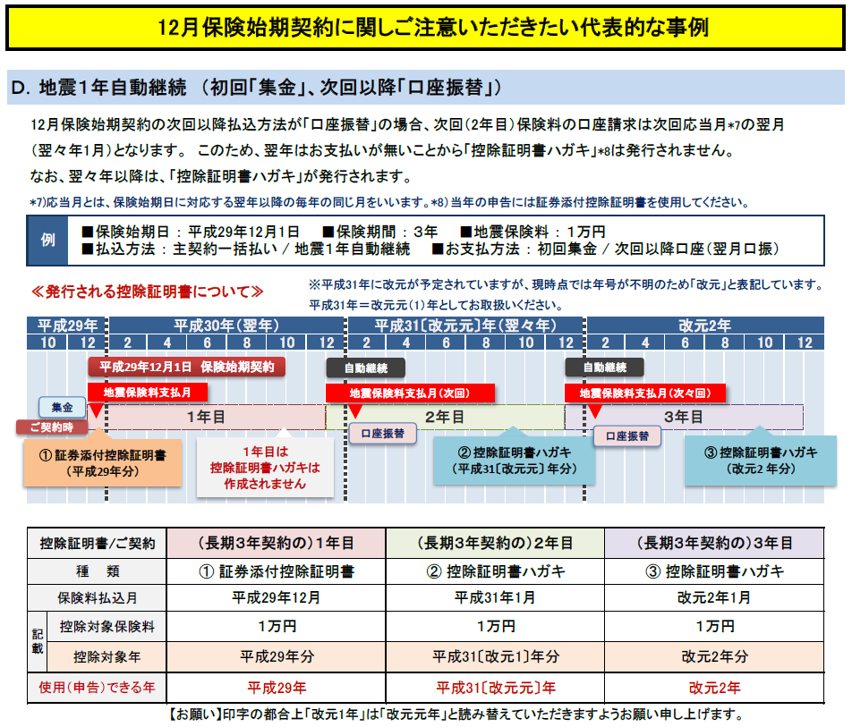 ※ 詳しくは、添付ファイル「D.地震1年自動継続(初回「集金」、次回以降「口座振替」)」をご覧ください。