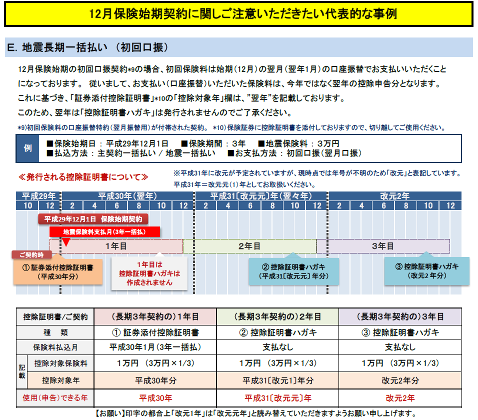 ※ 詳しくは、添付ファイル「E.地震長期一括払い(初回口振)」をご覧ください。