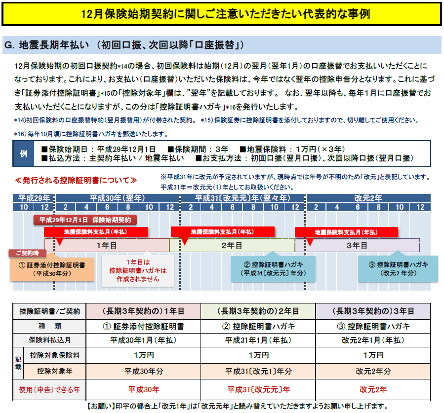 ※ 詳しくは、添付ファイル「G.地震長期年払い(初回口振、次回以降「口座振替」) 」をご覧ください。
